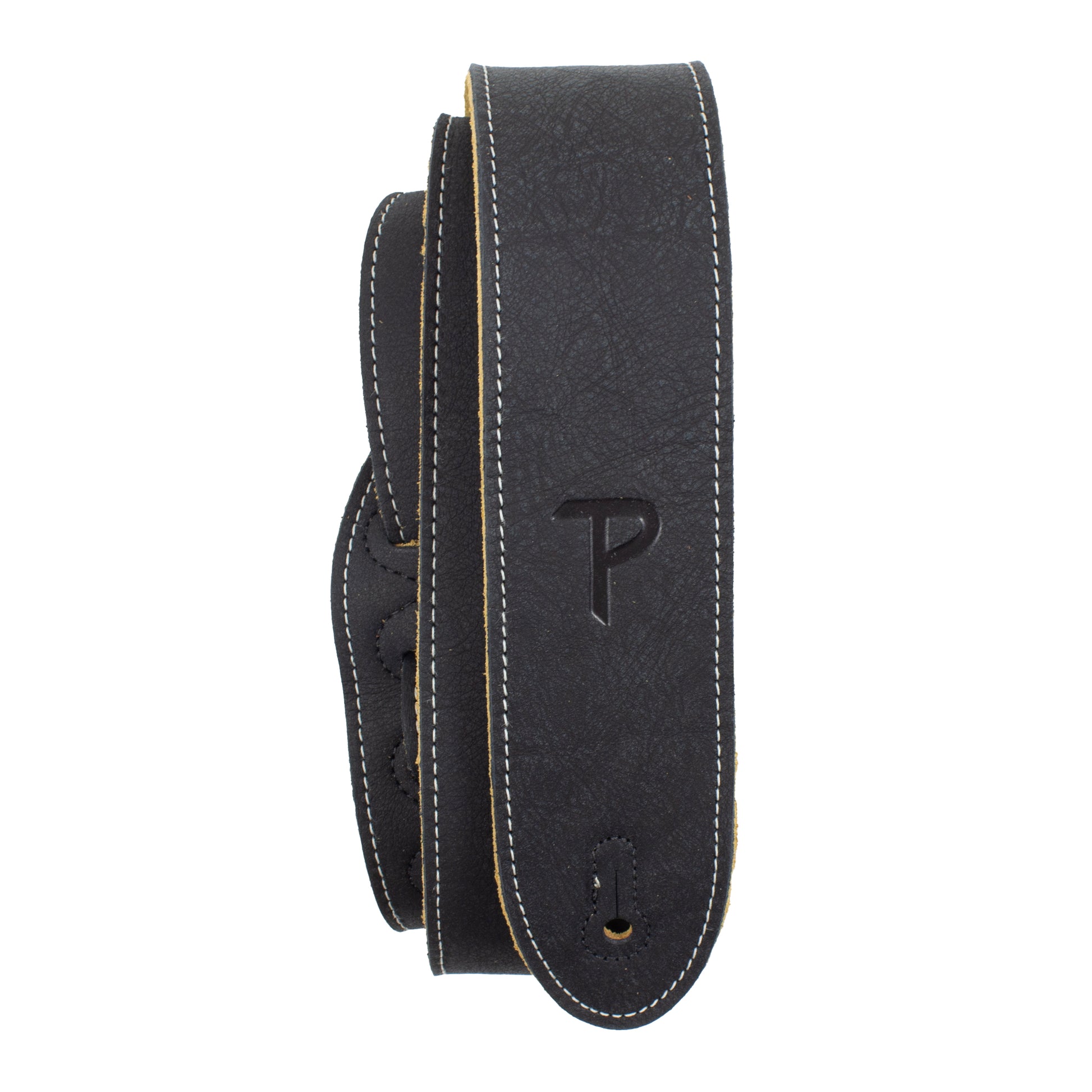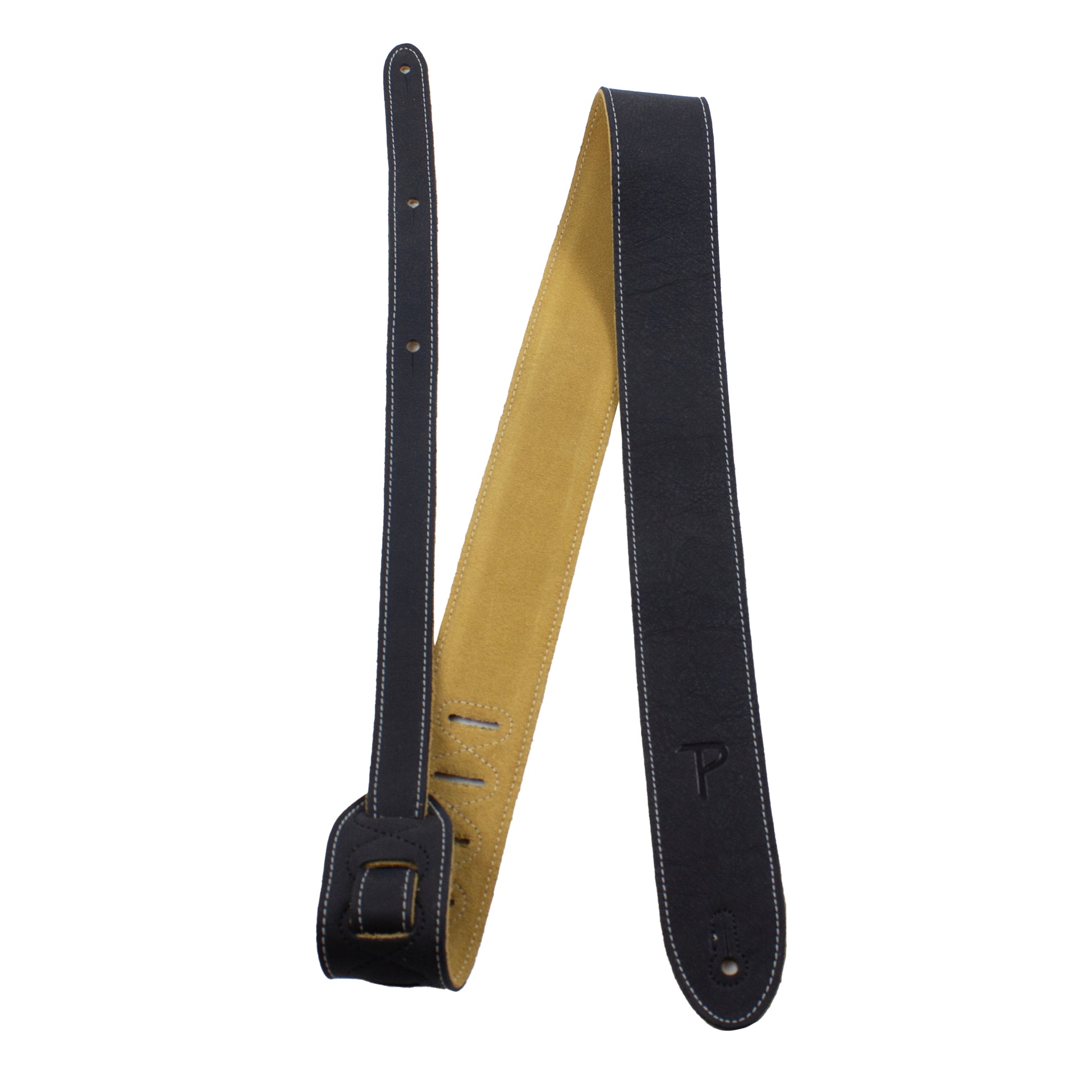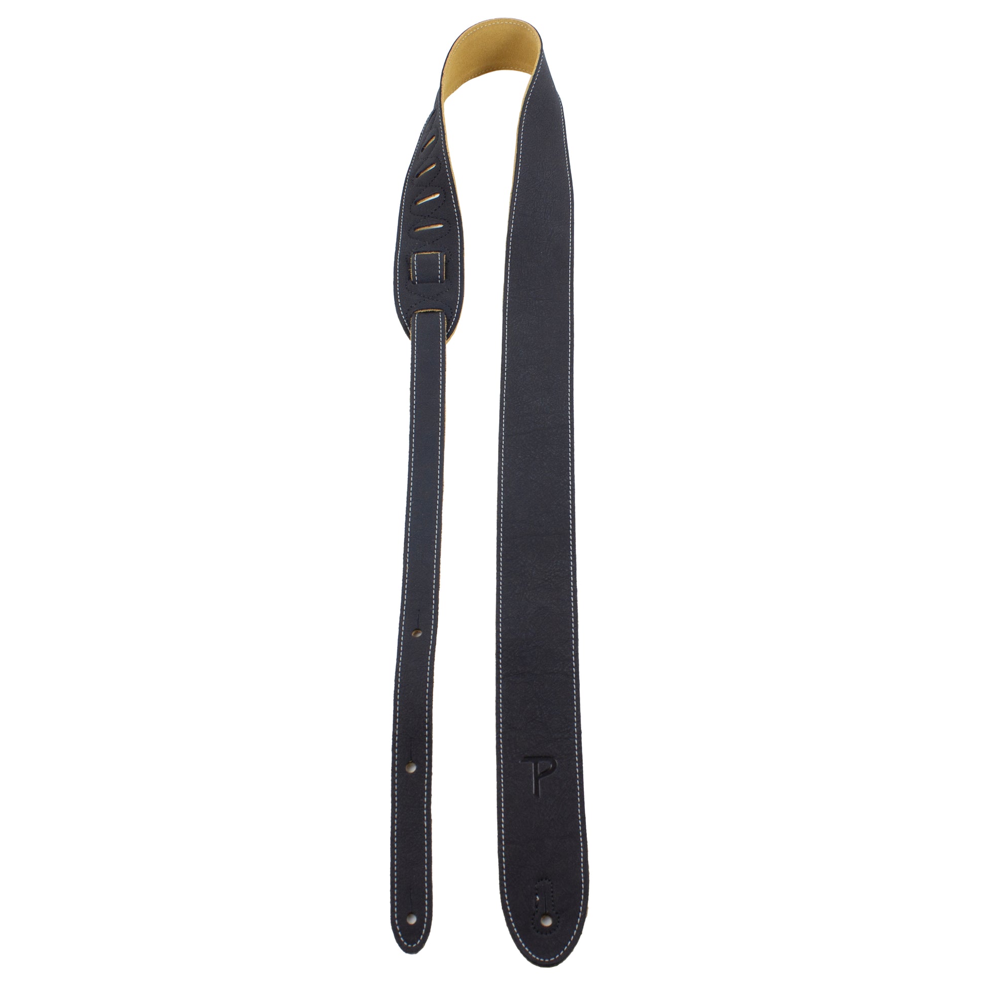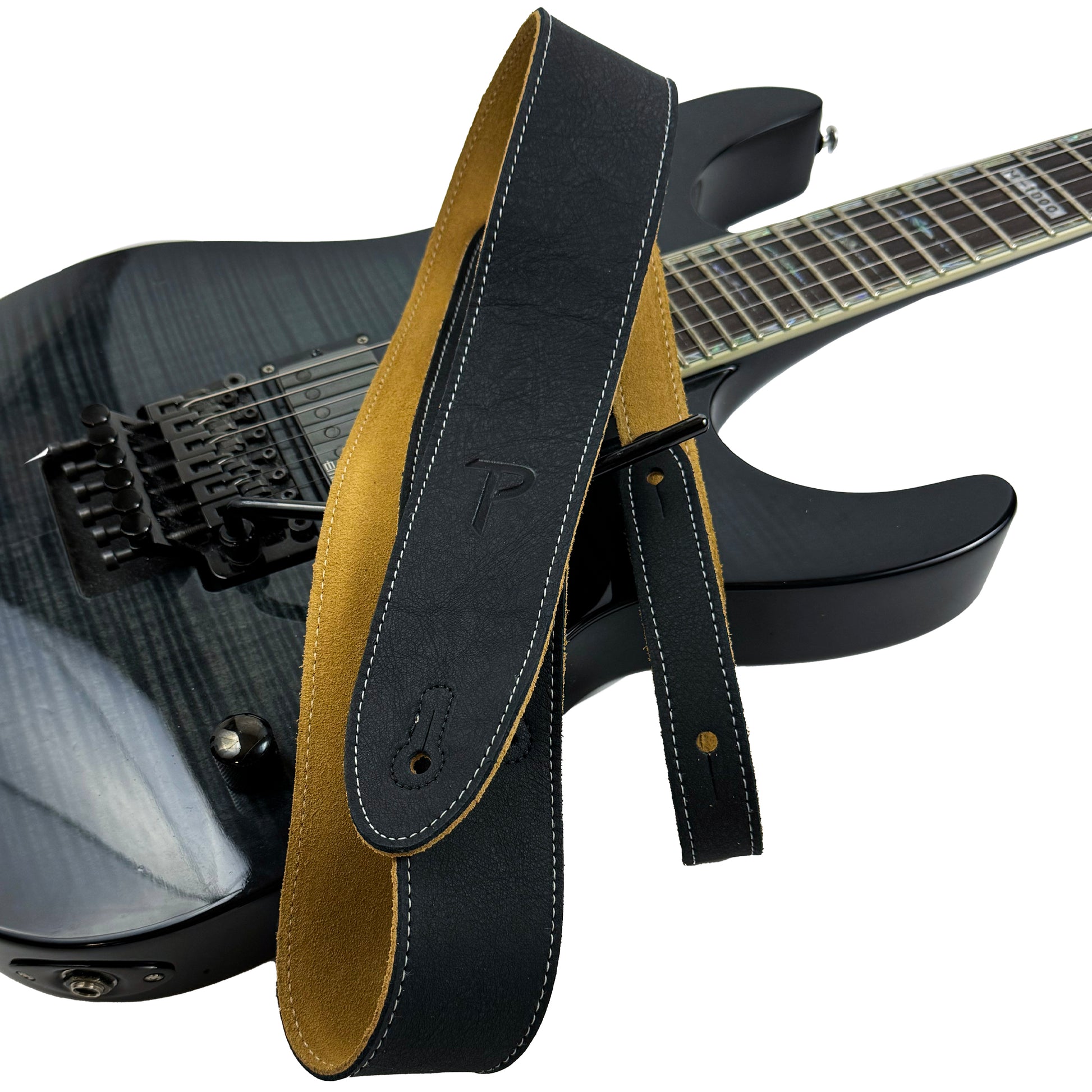 2” Black Ink Deluxe Soft Italian Garment Leather Guitar Strap with Super Soft Suede Backing.